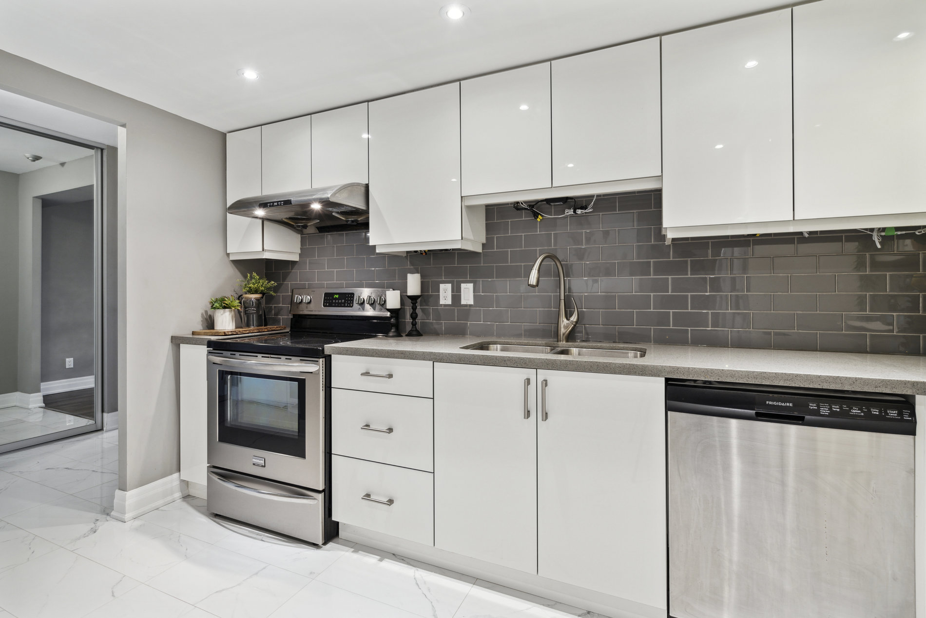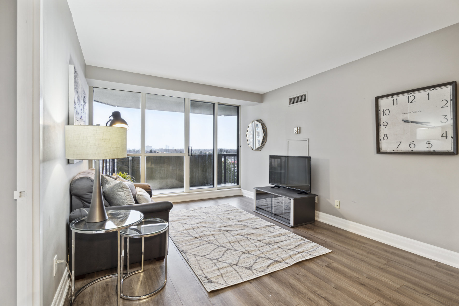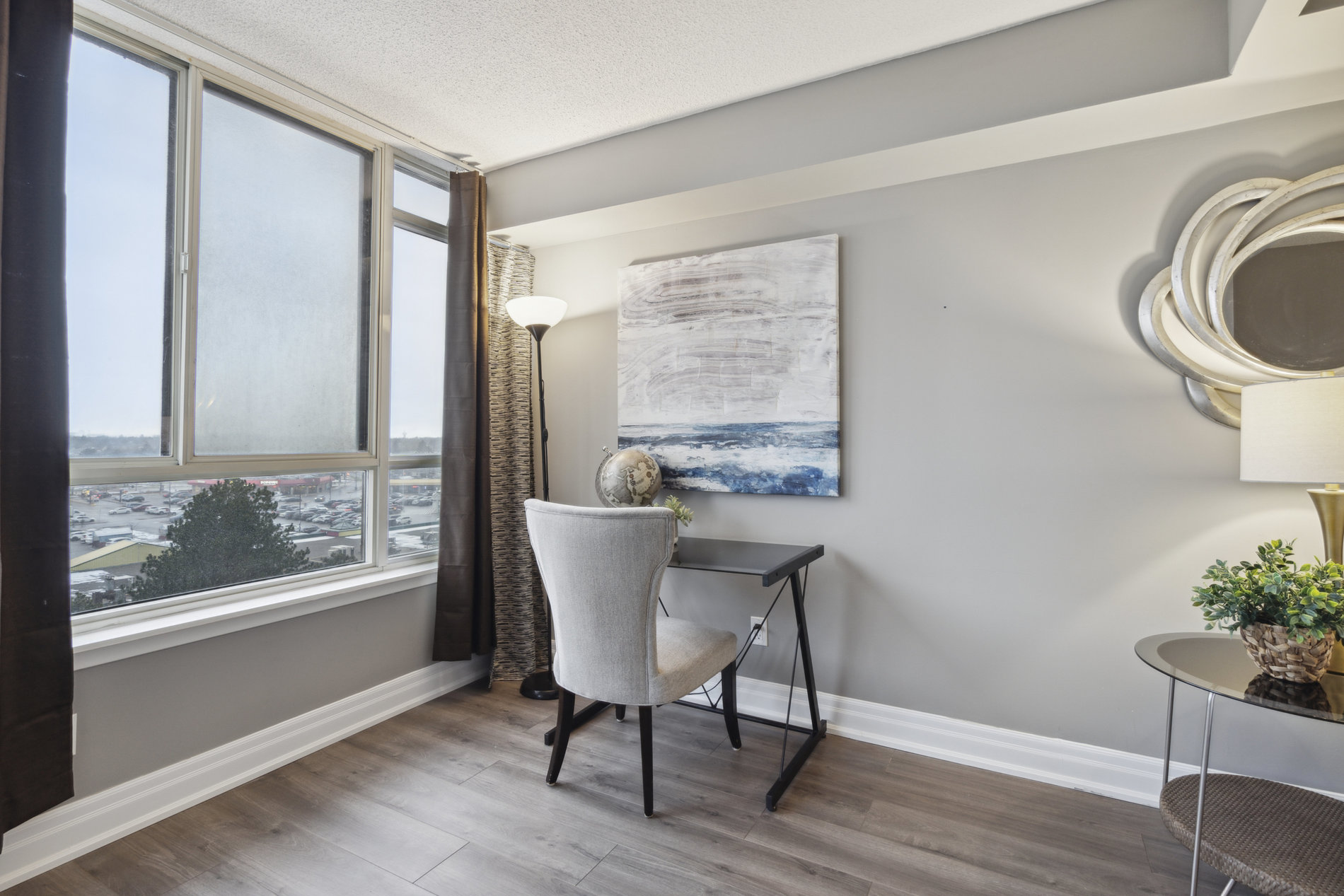 Stunning and tastefully renovated 2 bedroom 2 full bathroom unit situated in the Vista building, of the luxury Skypark development by Tridel with gated security & exceptional amenities surrounded by stunning landscaping. This unit boasts open concept living & dining, a balcony, underground parking &, in-suite laundry. Wide foyer with gorgeous tiled floors & an oversize entry closet provides a transitional space. A spacious bright kitchen includes sleek white cabinets with quartz. High quality wide plank laminate flows through out including the open concept living & dining rooms with floor to ceiling windows & patio doors for access to the balcony. The king size primary bedroom boasts wall to wall windows, a large closet area & a sleek ensuite bathroom. The additional bedroom is adjacent to a well appointed 3 piece bathroom & offers a solarium like area perfect for a den or office space. Extensive building amenities include an indoor & outdoor pool, sauna, party rooms, fitness area, billiards room, badminton/squash courts, tennis courts, BBQ area & patio, & ample visitor parking. Fees include Heat, Hydro, Water, A/C & Cable. This is a complex within steps to exceptional schools, shopping, restaurants, & transit. Minutes to L’Amoreaux North Forest/Park. Enjoy carefree exceptional upscale living.