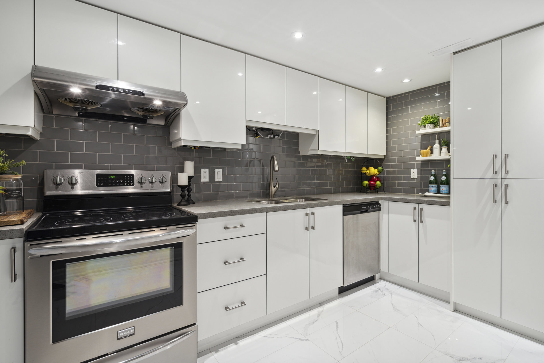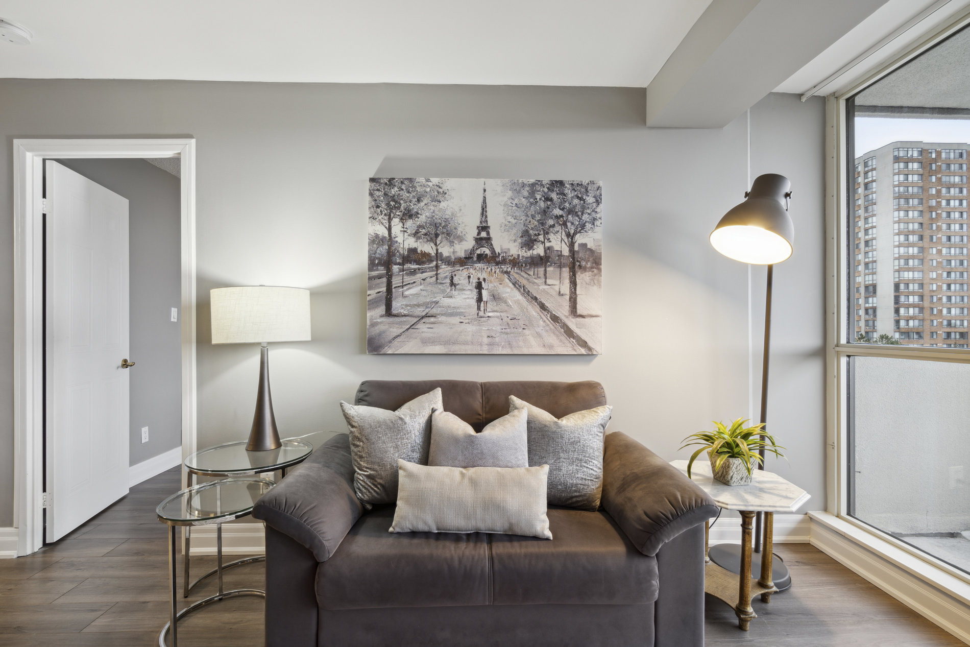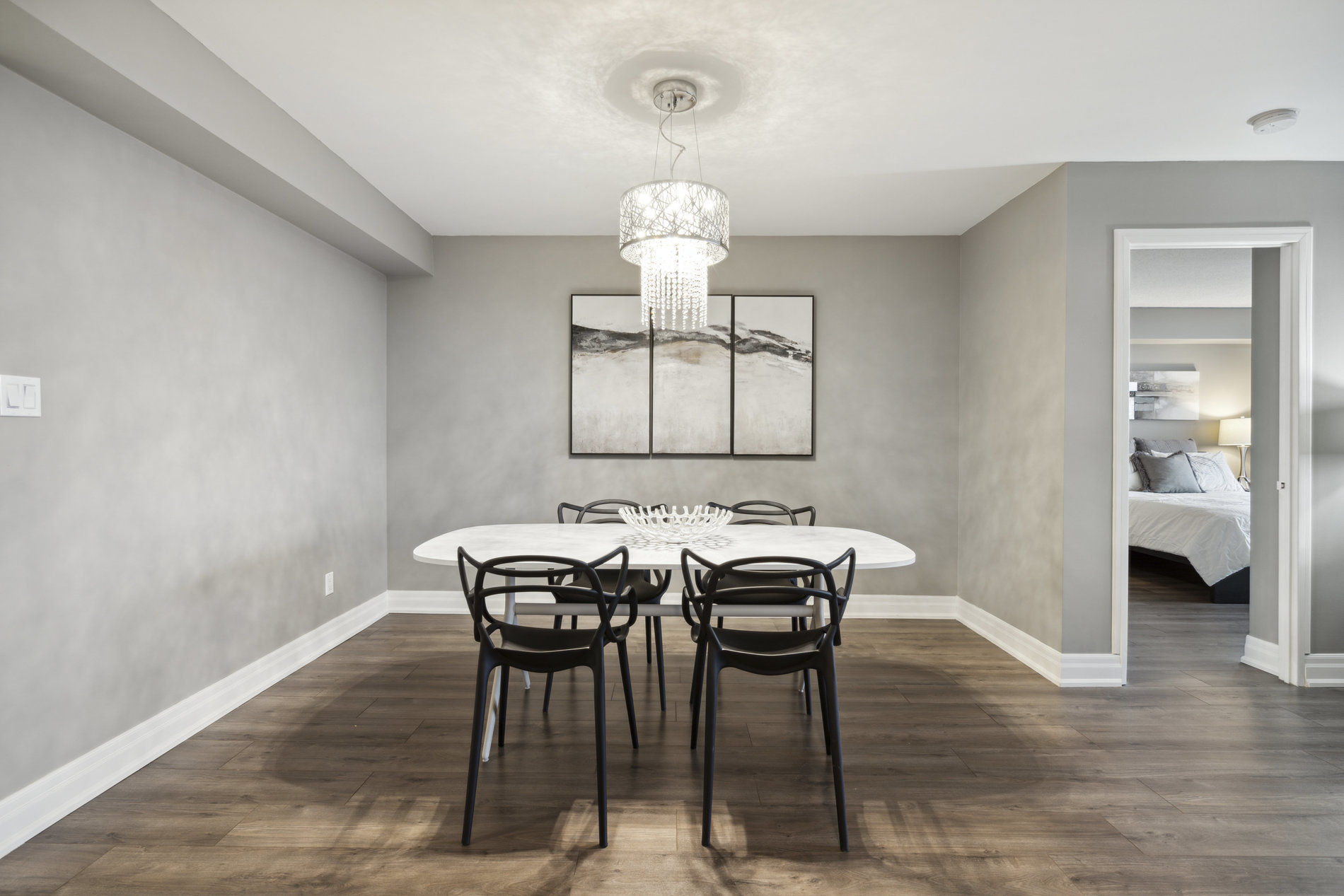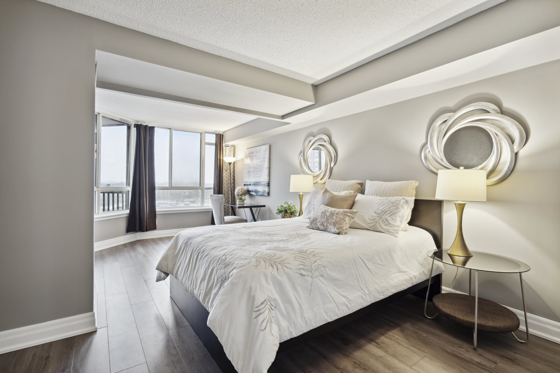 Stunning and tastefully renovated 2 bedroom 2 full bathroom unit situated in the Vista building, of the luxury Skypark development by Tridel with gated security & exceptional amenities surrounded by stunning landscaping. This unit boasts open concept living & dining, a balcony, underground parking &, in-suite laundry. Wide foyer with gorgeous tiled floors & an oversize entry closet provides a transitional space. A spacious bright kitchen includes sleek white cabinets with quartz. High quality wide plank laminate flows through out including the open concept living & dining rooms with floor to ceiling windows & patio doors for access to the balcony. The king size primary bedroom boasts wall to wall windows, a large closet area & a sleek ensuite bathroom. The additional bedroom is adjacent to a well appointed 3 piece bathroom & offers a solarium like area perfect for a den or office space. Extensive building amenities include an indoor & outdoor pool, sauna, party rooms, fitness area, billiards room, badminton/squash courts, tennis courts, BBQ area & patio, & ample visitor parking. Fees include Heat, Hydro, Water, A/C & Cable. This is a complex within steps to exceptional schools, shopping, restaurants, & transit. Minutes to L’Amoreaux North Forest/Park. Enjoy carefree exceptional upscale living.